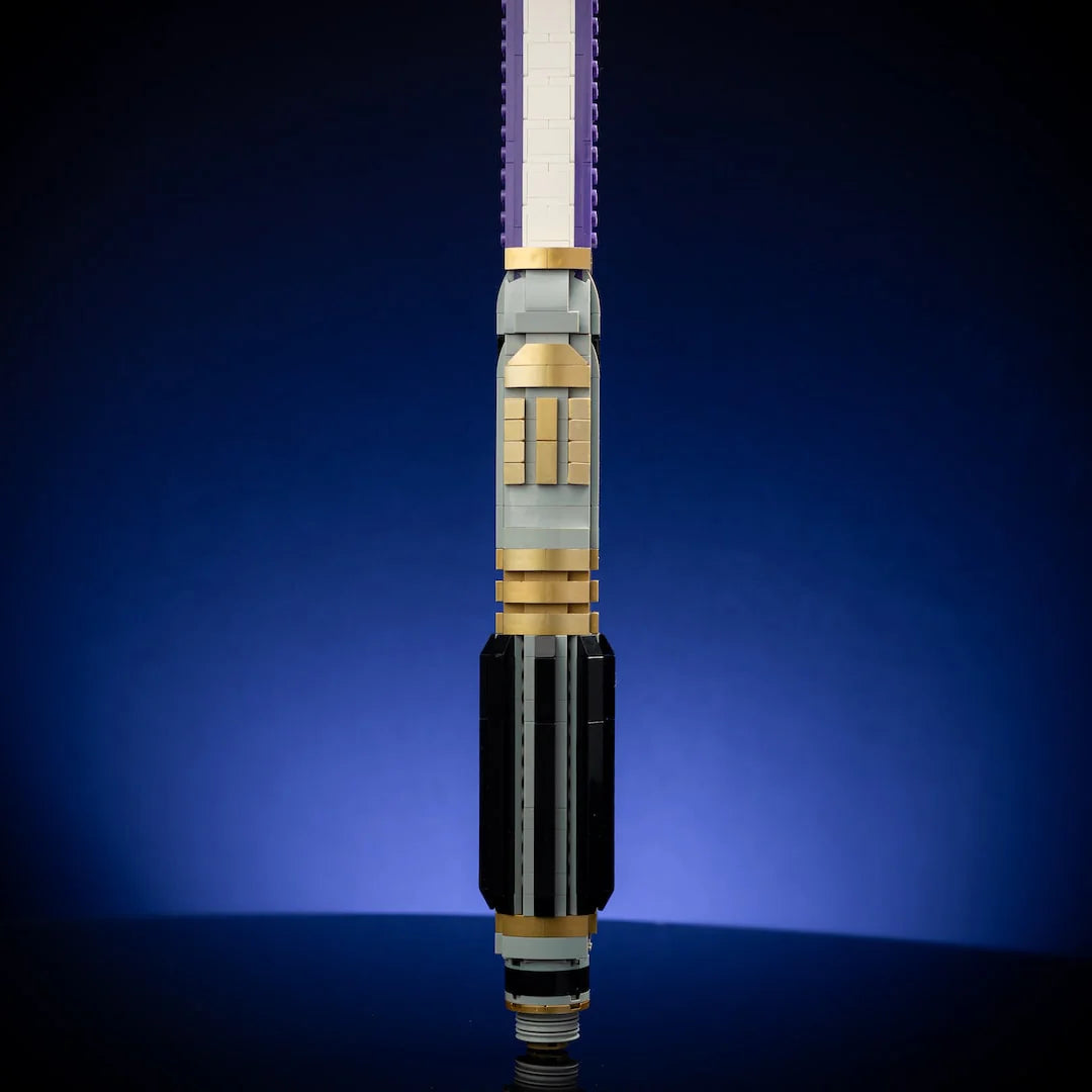 This saber replica is built with over 700 LEGO® bricks, designed with playability in mind. You can swing it if you're careful. The blade is constructed using creative building techniques to capture the bright glow of a saber and give it the strength a wieldable blade should have.